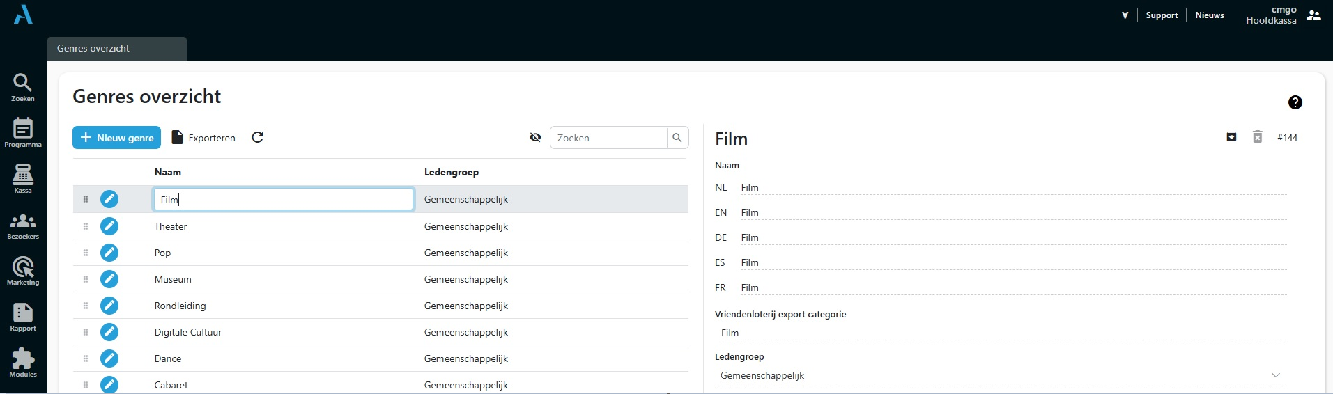 - Je kunt eenvoudig de Genre naam aanpassen via direct editen in het overzicht